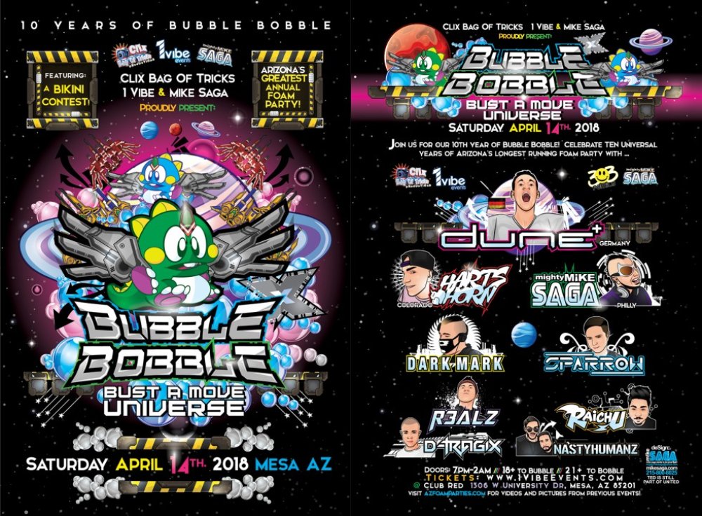 For the 10th year in a row I'll be hosting Arizona's greatest annual foam party featuring our absurd new foam canon. International dance music sensation DUNE will be headlining the night with continental talent provided by Hartshorn, MIghty Mike Saga, Dark Mark, Sparrow, Raichu, Realz, Dtragix, and NastyHumanz. An evening of fun foam and dancing. 18+ / 21+ to drink.